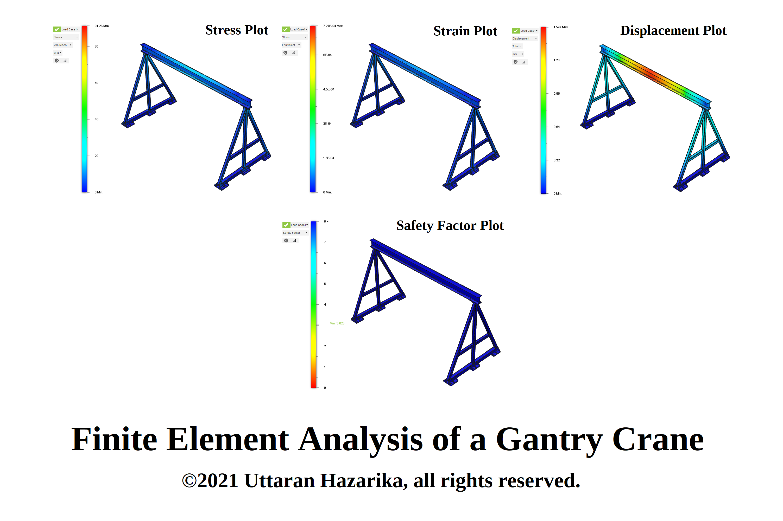 FEA Mechanical Engineering Finite Element Analysis of a Gantry Crane by Uttaran Hazarika March 2, 2021April 27, 2021 Finite element analysis of a gantry crane done in Autodesk Fusion 360. Post navigation Finite Element Analysis of a Floor Mount Rotating CraneFinite Element Analysis of a Workstation Crane