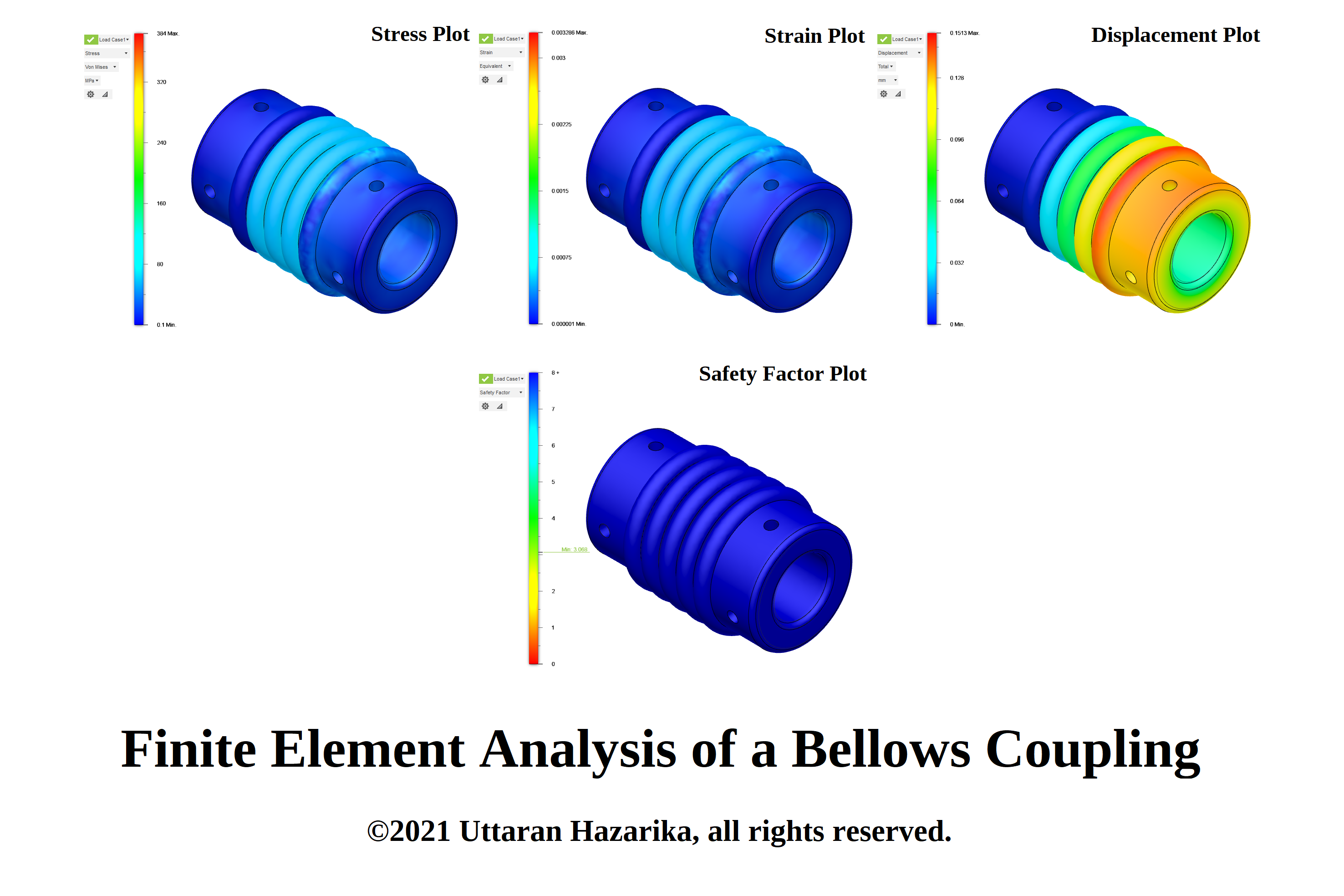 FEA Mechanical Engineering Finite Element Analysis of a Bellows Coupling by Uttaran Hazarika April 27, 2021April 27, 2021 Finite element analysis of a bellows coupling done in Autodesk Fusion 360. Post navigation Finite Element Analysis of a Clamping Bellows CouplingFinite Element Analysis of a Stacked Wave Disc Spring