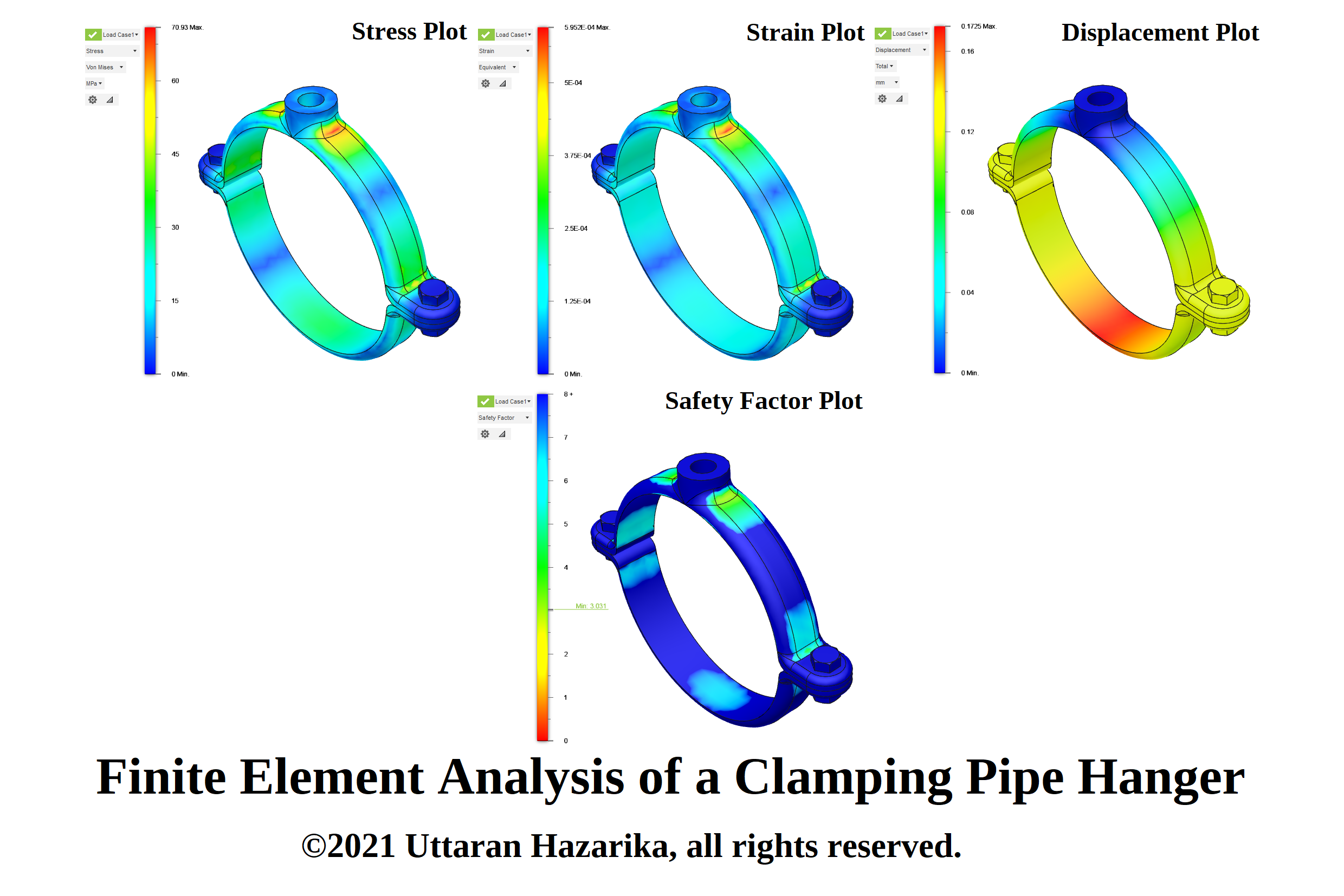 Finite element analysis of a clamping pipe hanger done in Autodesk Fusion 360.