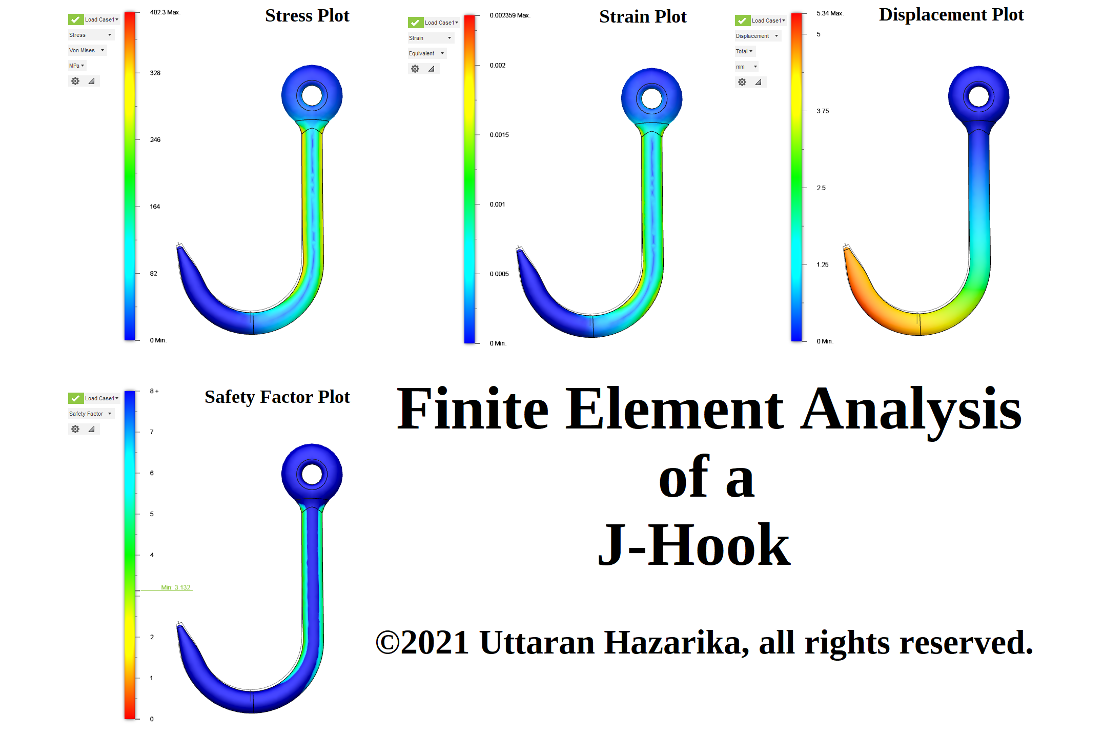 FEA Mechanical Engineering Finite Element Analysis of a J-Hook by Uttaran Hazarika April 27, 2021April 27, 2021 Finite element analysis of a “J-Hook” done in Autodesk Fusion 360. Post navigation Finite Element Analysis of an Eye HookFinite Element Analysis of an S-Hook