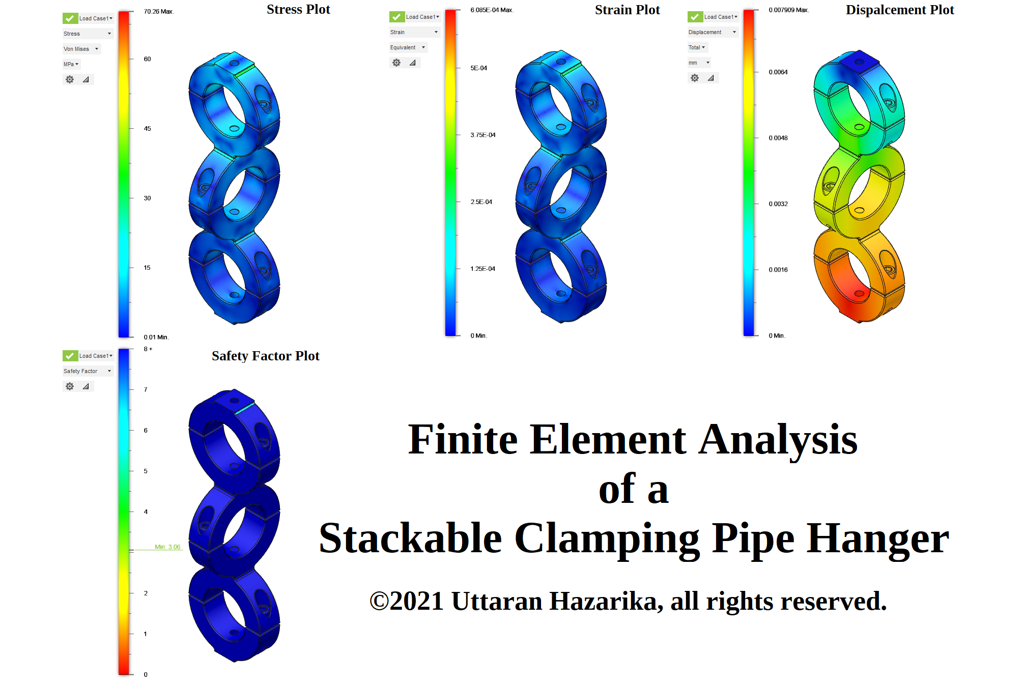 Finite element analysis of a stackable clamping pipe hanger done in Autodesk Fusion 360.