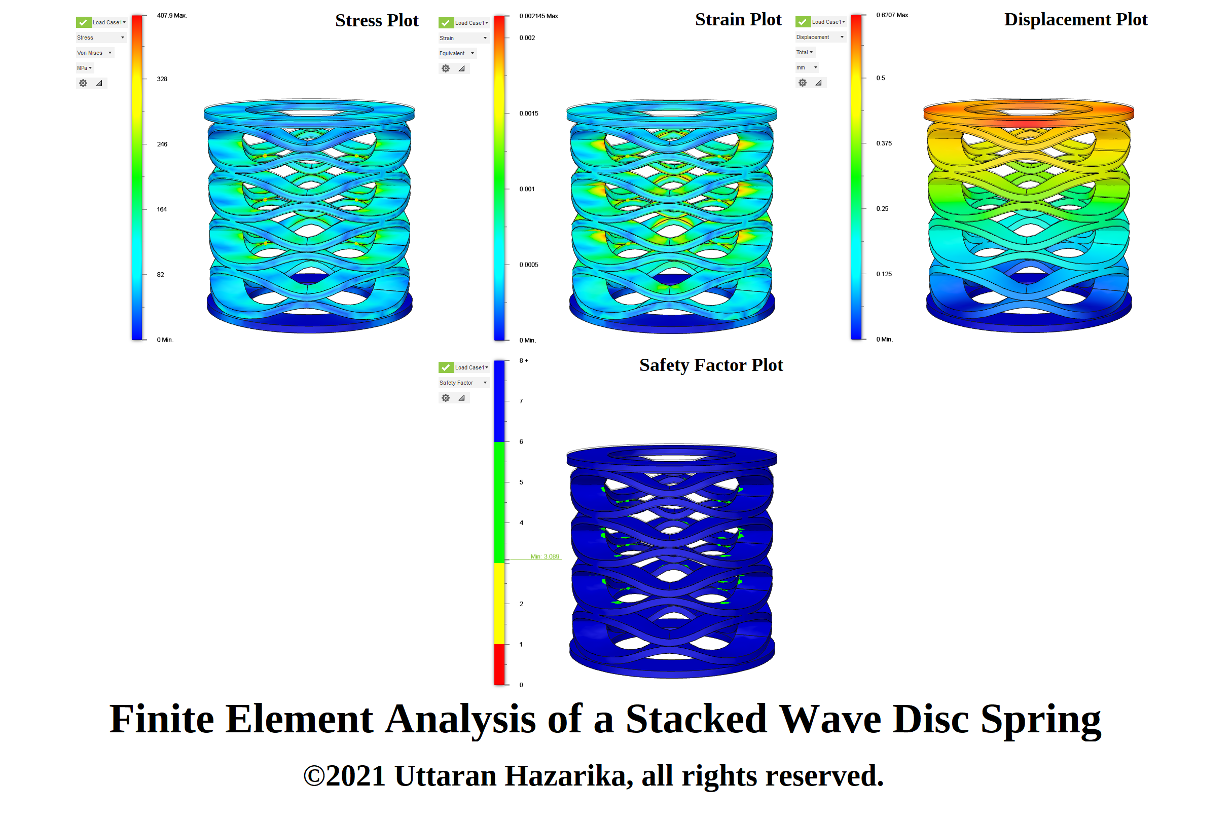 Finite element analysis of a stacked wave disc spring done in Autodesk Fusion 360.