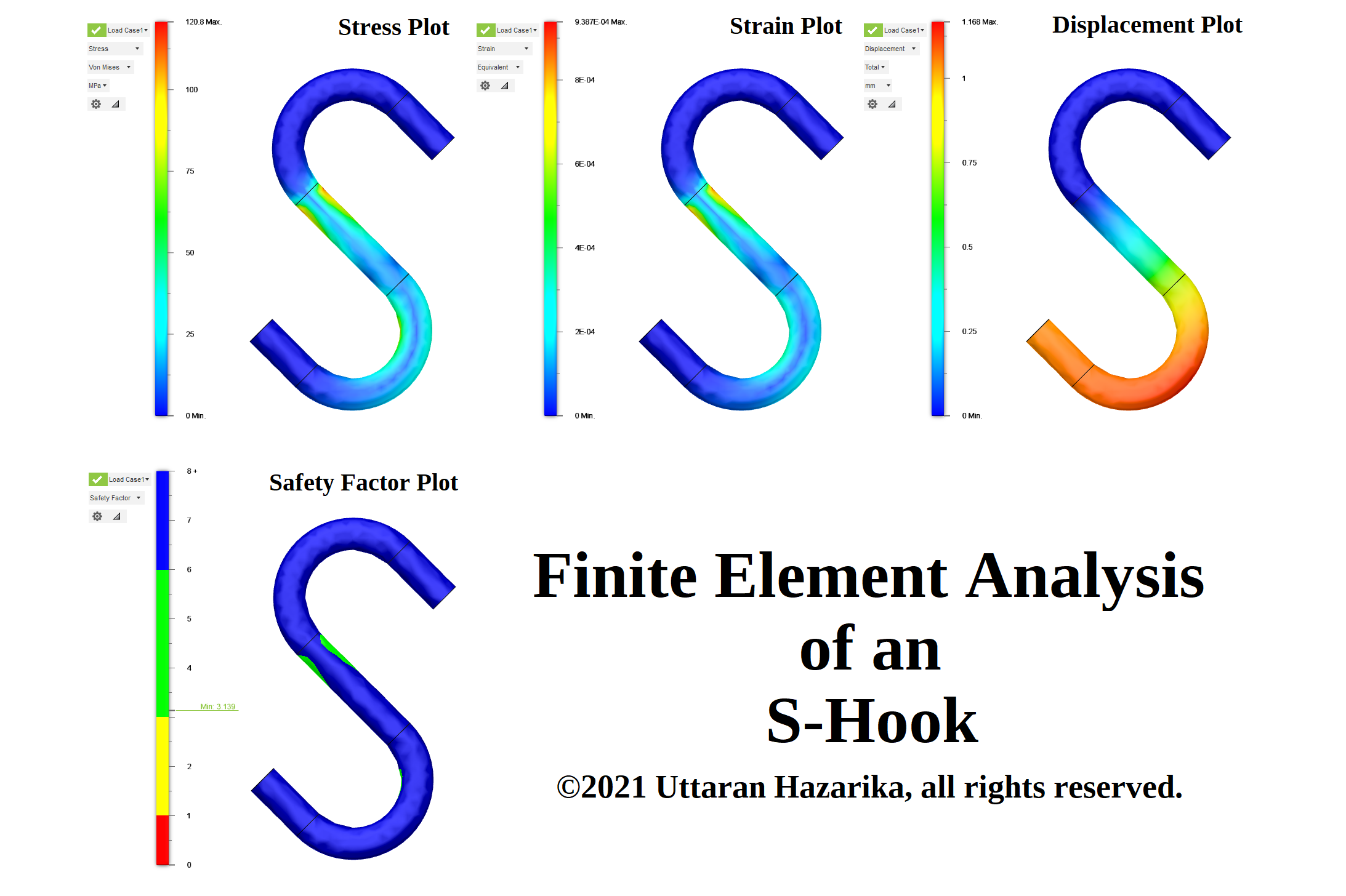 FEA Mechanical Engineering Finite Element Analysis of an S-Hook by Uttaran Hazarika April 27, 2021April 27, 2021 Finite element analysis of an “S-Hook” done in Autodesk Fusion 360. Post navigation Finite Element Analysis of a J-HookFinite Element Analysis of a Swivel Hoist Ring