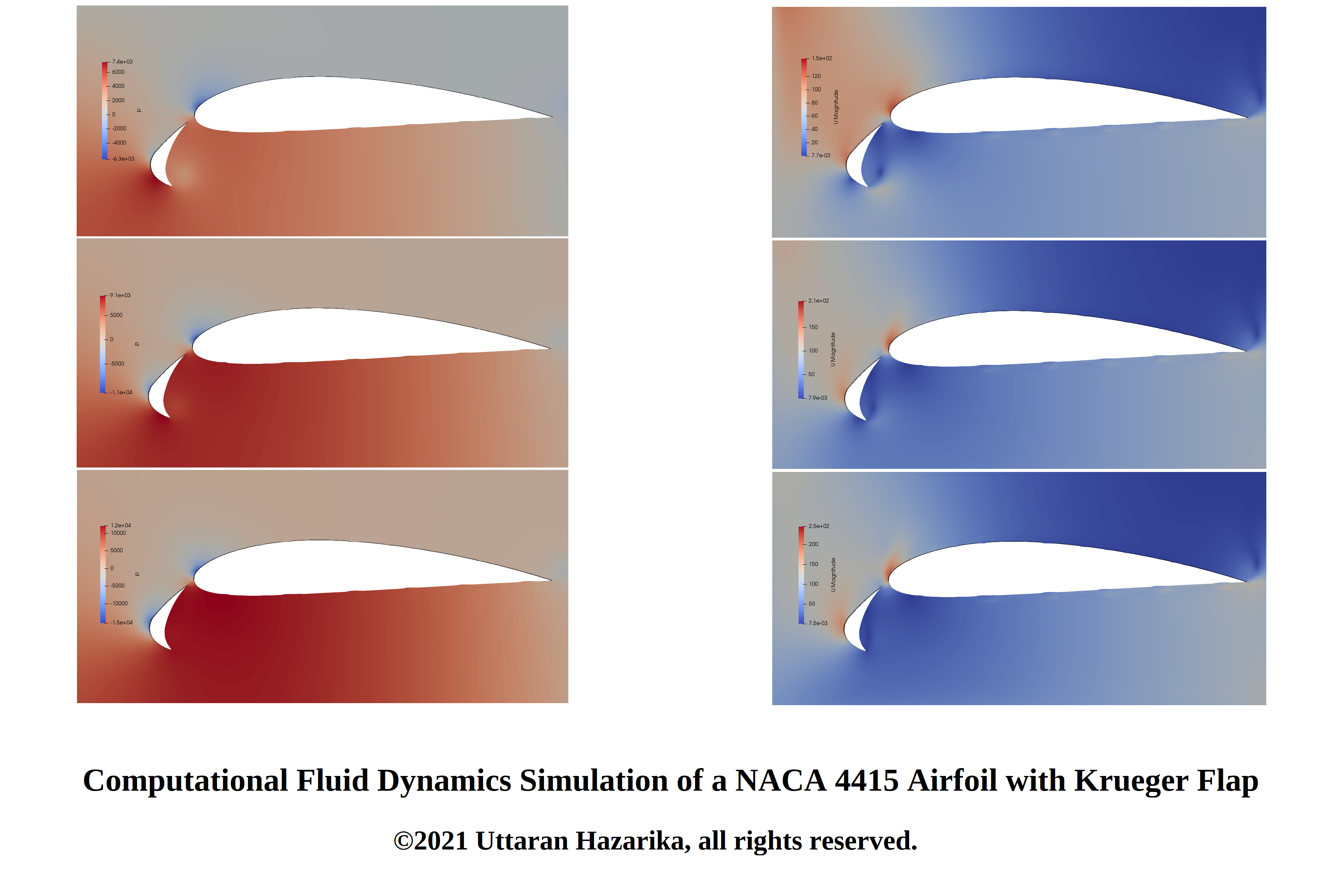 Computational fluid dynamics simulation of a NACA 4415 airfoil with Krueger flap done in OpenFOAM.